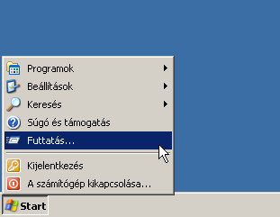Kattintsunk a Start menüre, és válasszuk ki a Futtatás menüpontot!