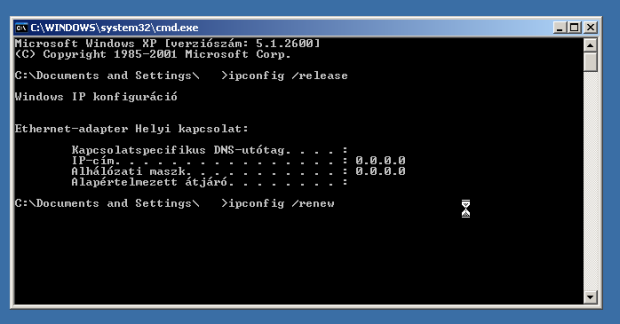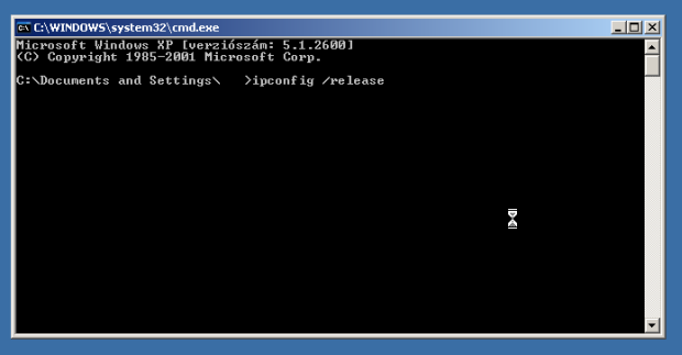 parancsot, majd nyomjuk le az Enter billentyűt. Ezzel arra utasítjuk az operációs rendszert, hogy szabadítsa fel az eddig használt hálózati paramétereit.